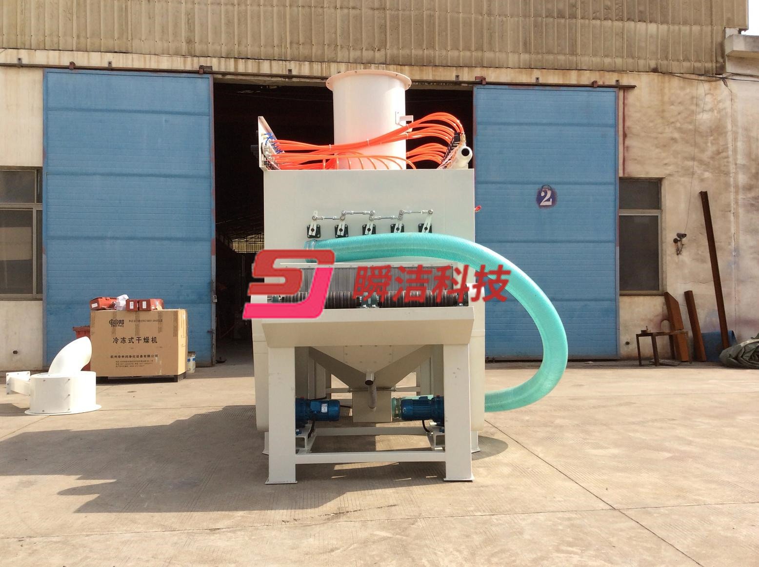 5、配有大型除塵機和特制磨料與粉塵旋風分離器,可分離磨料與粉塵,可減少磨料消耗,環(huán)境污染。磨料可自動循環(huán)使用。