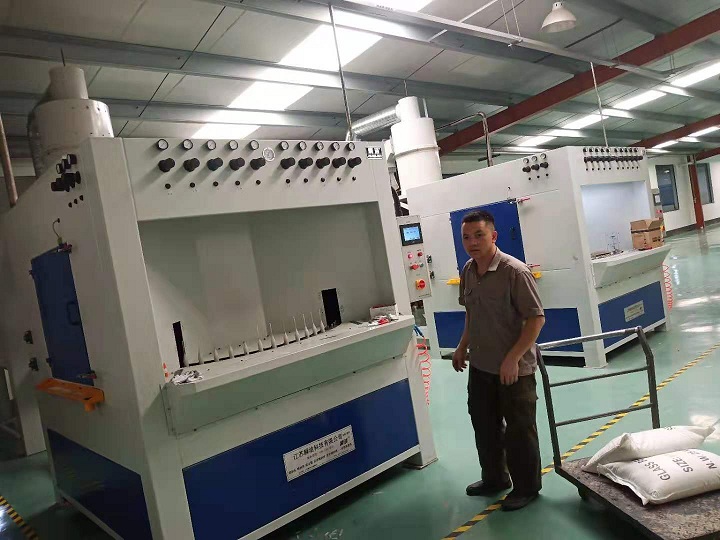 7、 該設備出料口設計吹凈槍3把,保證每個產品噴砂磨料無殘留,潔凈美觀。