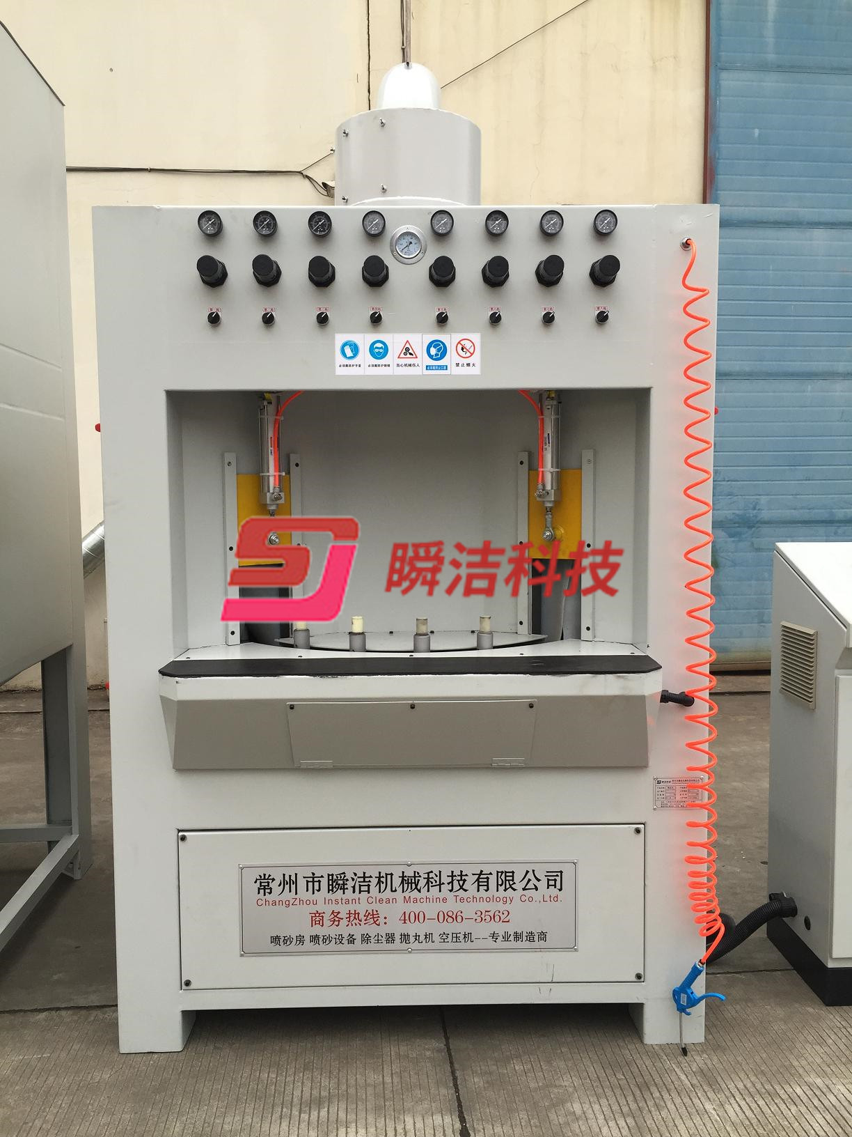 4、 工件在噴砂時(shí),工位臺(tái)360度旋轉(zhuǎn),旋轉(zhuǎn)速度變頻可調(diào),保證每個(gè)工件噴砂均勻。