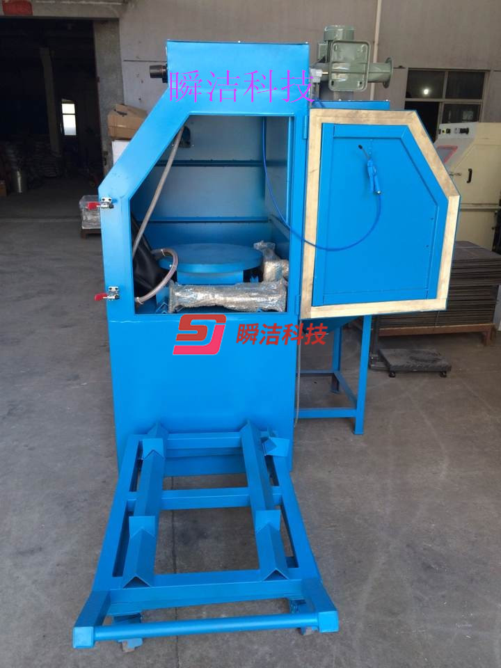 3、配備活動臺車,和轉盤,操作時將工件放在轉盤上,然后推入機內即可噴砂作業,操作簡單省力。