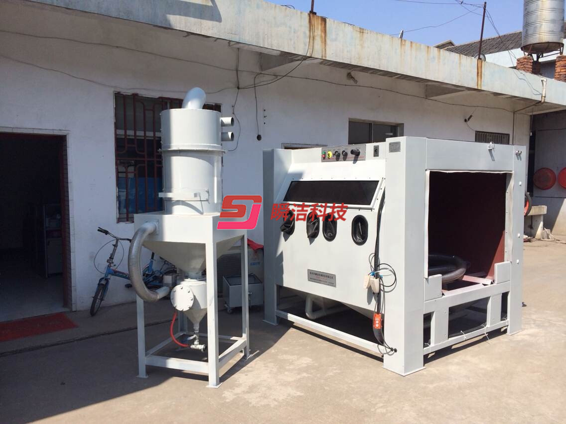 3、配備活動臺車,和轉盤,操作時將工件放在轉盤上,然后點動控制臺車入機內,轉盤點動控制,即可噴砂作業,操作簡單省力。