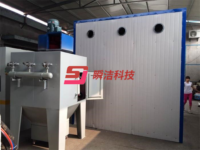 噴砂房又叫噴丸房、打砂房,適應于一些大型工件表面清理、除銹,增加工件與涂層之間的附著力等效果 噴砂房根據磨料的回收方式噴丸房分為:機械回收式噴丸房和人工回收式噴丸房. 其中人工回收噴砂房由于經濟實用,制作簡單、方便,用材簡易,大大的減少了噴砂房的造價成本,也被很多客戶特別是中小企業所接受。